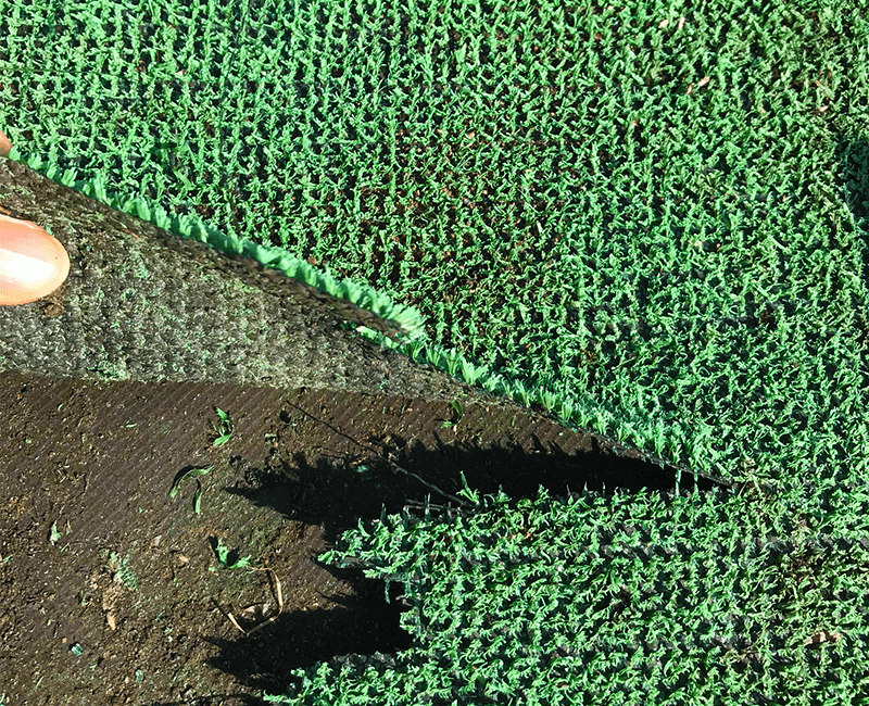 • 安い人工芝の裏面は合成ゴムで低耐久。ポリウレタンがおすすめ。