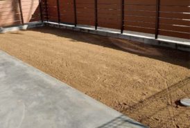 7.5m×2mの長方形に仕上げて余ったところには砂利を敷き詰めました。砂利の部分にはこれから徐々に植栽して行くつもりです。手触りも良くチクチクせず良いお品です。